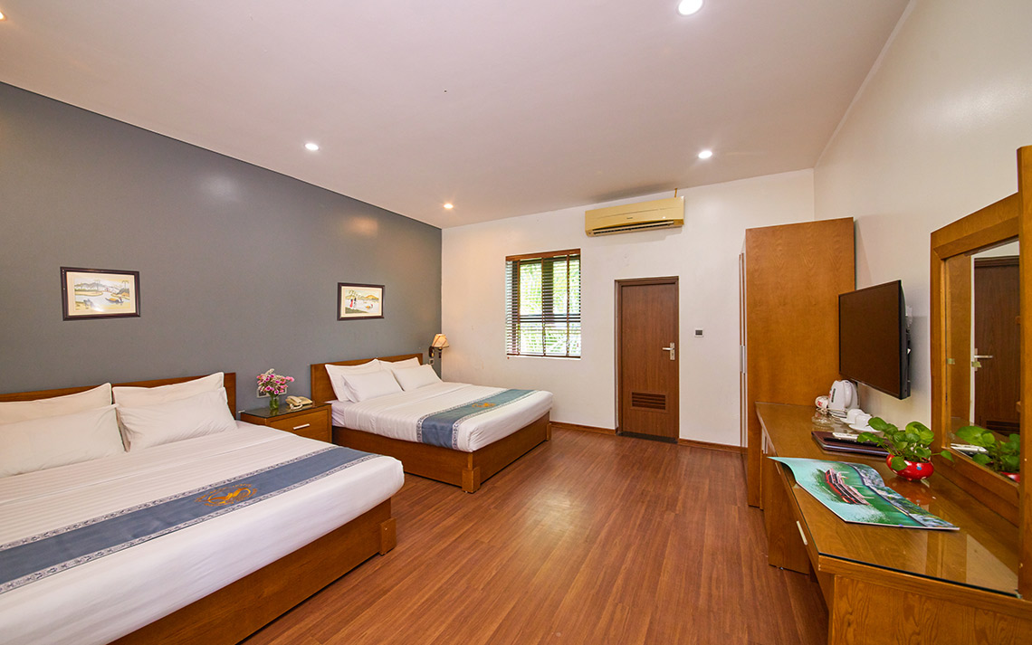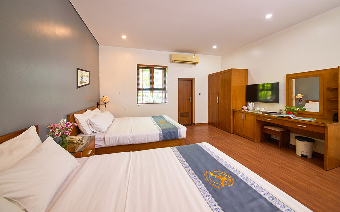 Phòng rộng với 2 giường x 1.5m, hướng núi, cung cấp một loạt các tiện nghi và trang thiết bị đầy đủ. Phòng thích hợp cho gia đình 4 người lớn + 2 trẻ em hoặc nhóm bạn bè dưới 6 người.